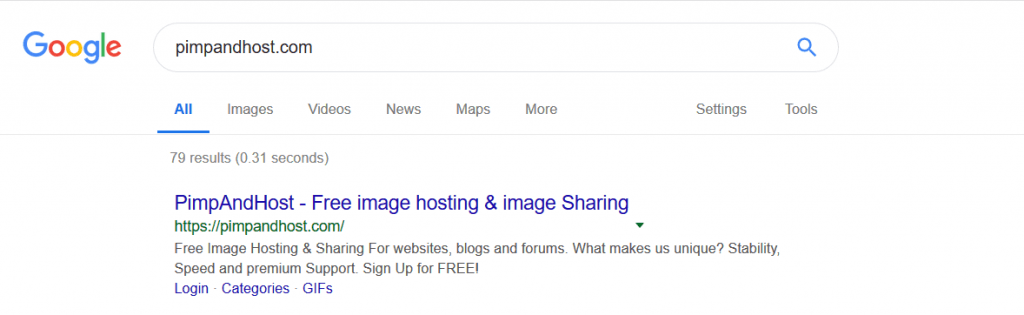 However, at the time of writing this article, we found that if you search for “PimpAndHost.com” (putting .com in the end), you can see the PimpAndHost website appears in Google and Bing.